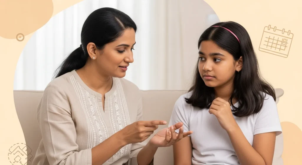 Medical Consultation: It is important to consult a gynaecologist if signs of puberty appear before 8 years of age (Early Puberty), or if she experiences severe pain, very heavy bleeding, or irregular cycles once periods begin.